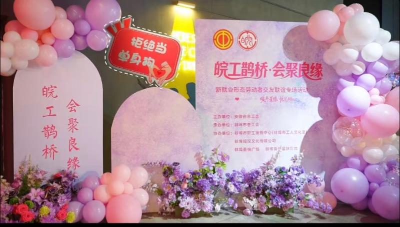 近日,由安徽省总工会主办、蚌埠市总工会承办的“皖工鹊桥·会聚良缘”蚌埠市新就业形态劳动者专场交友联谊活动在蚌埠吾悦广场温馨举行。本次活动吸引了来自快递、外卖、网约车、电商等多个新就业领域的百余名单身青年积极参与。安徽省总工会女职工部四级调研员李宜胜现场指导并致辞,蚌埠市总工会党组成员、副主席吴燕,省总工会女职工部一级主任科员王慧慧参与活动。