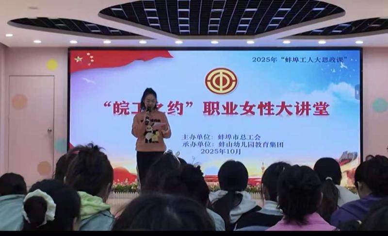 为进一步关爱女职工生活,提升科学育儿能力,在市总工会的精心组织和安排下,蚌山幼儿园工会于近期成功承办了“皖工之约”职业女性大讲堂——婴幼儿托育讲座。本次活动作为市总工会服务基层女职工的重要举措,特别聚焦于“婴幼儿保育的应急处理及日常照顾”主题,为我园各园园长、骨干女教师带来了一场专业、实用、精彩的托育知识讲座。