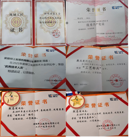 殷志发,中共党员,1993年参加工作,始终奋战在汽车起重机技术领域。自2008年加入安徽柳工,从一名普通的工艺员起步,凭借扎实的业务能力和刻苦的钻研精神,一步一个脚印,历任工段长、车间技术主管,直至成长为一名出色的工艺技术管理高级项目工程师。三十余年的职业生涯,他始终与汽车起重机为伴,将满腔热情倾注于工程机械事业。多年来,他先后荣获公司优秀共产党员、质量优秀员工、工艺标兵、“安柳工匠”、“珠城工匠”等诸多荣誉,这些闪光的荣誉,是他辛勤付出与卓越成就的最佳见证。