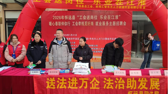 为切实做好春节期间企业用工服务,帮助职工群众实现更高质量就业,1月31日,县总工会联合县人社局、司法局、文联及书法协会等多部门,在经开区工会驿站成功举办“工会送岗位,乐业在江淮”新春服务活动。活动聚焦职工群众实际需求,集中开展了“送岗位、送春联、送政策、送法律、送温暖”等系列暖心服务,将关怀与实惠送到职工群众身边。