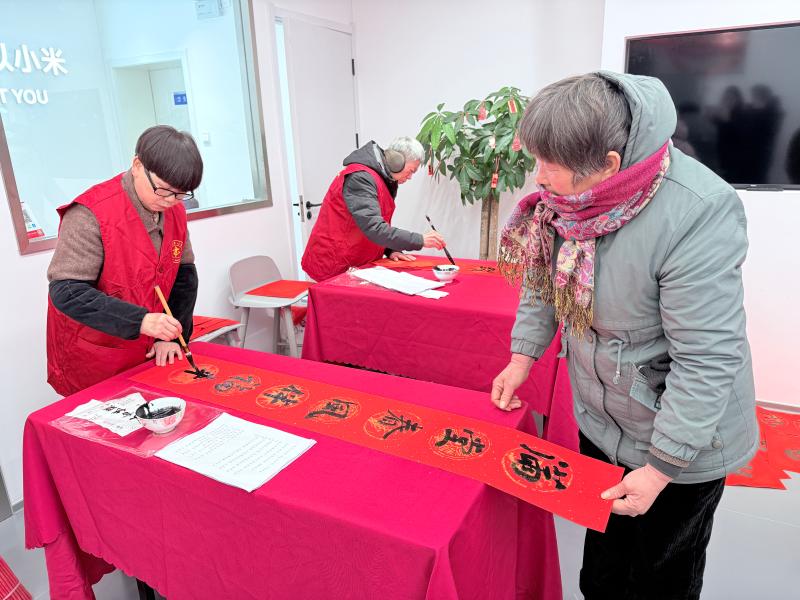 活动现场,墨香四溢,暖意融融。闻讯赶来的职工群众络绎不绝,他们或仔细挑选心仪的楹联内容,或驻足欣赏书法艺术,脸上洋溢着喜悦的笑容。书法家们挥毫泼墨,笔走龙蛇,一副副饱含年味、寓意吉祥的春联和一个个苍劲有力、形态各异的“福”字跃然纸上,传递着对新年的期盼与祝福,整个现场都沉浸在浓浓的年味之中。
