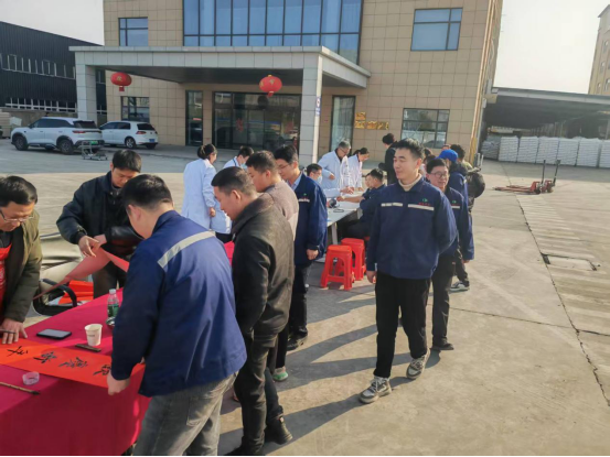活动现场气氛热烈,县书法家协会的书法家们挥毫泼墨,将对一线职工的关怀与新春的祝福融入笔端。以“匠心筑梦”“新春纳福”为主题,精心书写了几十副寓意吉祥、风格多样的春联。企业职工有序领取春联,纷纷表示手写春联既有文化温度,又具教育意义,为车间班组增添了浓厚的文化氛围。通过“文化润企”的形式,增强了企业的向心力和职工的凝聚力,营造了积极向上、和谐融洽的企业文化氛围。