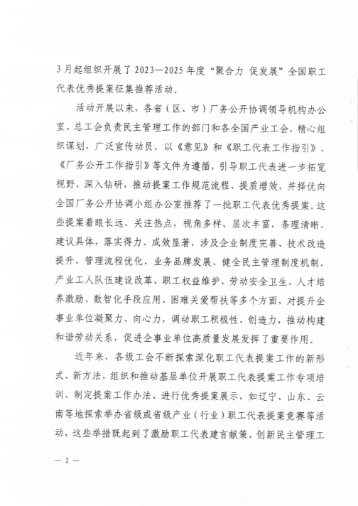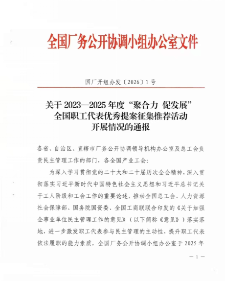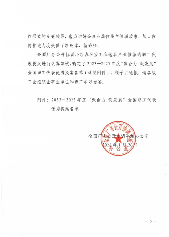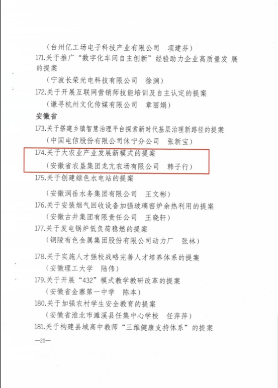 近日,全国厂务公开协调小组办公室通报了《2023-2025年度“聚合力 促发展”全国职工代表优秀提案征集推荐活动开展情况的通报》,我县选送的安徽省农垦集团龙亢农场有限公司韩子行的《关于大农业产业发展新模式》职工代表提案荣获“2023-2025年度‘聚合力 促发展’全国职工代表优秀提案”,在此特向怀远龙亢农场和韩子行同志表示祝贺。
