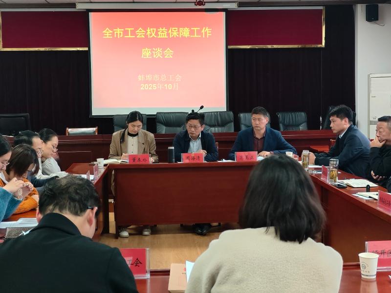 10月31日下午,蚌埠市总工会召开全市工会权益保障工作座谈会。市总工会党组成员、副主席周海清主持会议并讲话。各县(区)总工会分管权益保障工作的领导及相关负责同志参加会议。