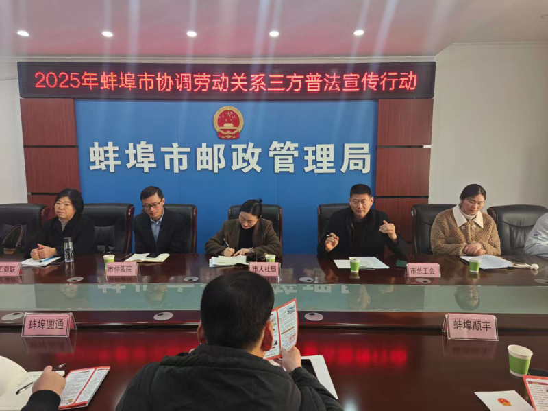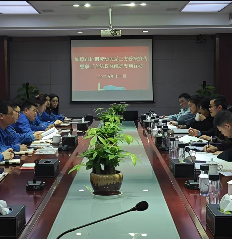 11月25日,市总工会、市人社局、市工商联等协调劳动关系三方分别赴蚌埠绿色动力再生能源公司和市快递协会,共同开展普法宣传暨职工合法权益维护专项法律体检活动。此次活动邀请了市仲裁院、市法律援助中心提供专业支持,形成了多方联动、合力送法的良好格局。