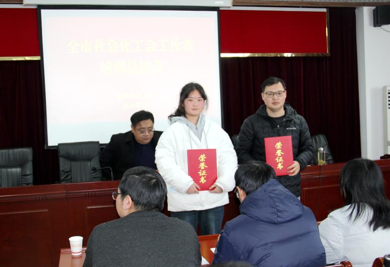 会议表彰了我市参加首届安徽省社会化工会工作者业务技能竞赛获奖人员,通报了新招录社会化工会工作者培训考核结果,新入职社会化工会工作者代表与大家分享了培训感悟和收获。