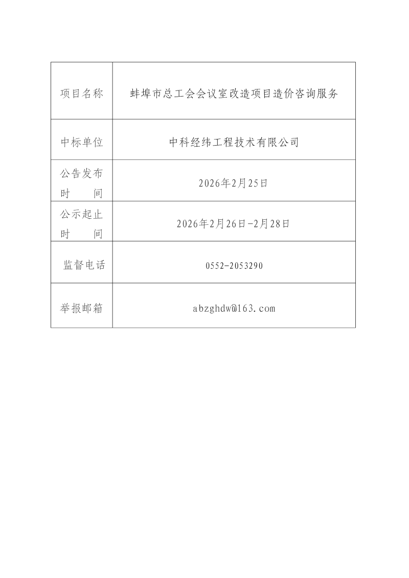 蚌埠市总工会采购结果公告